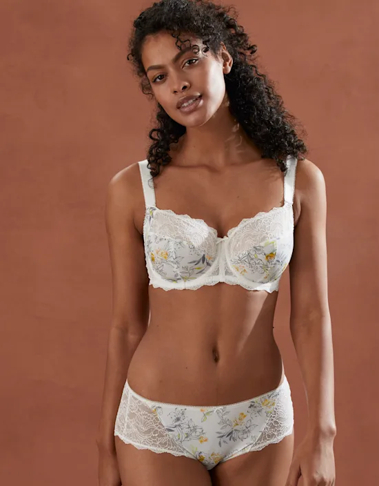 ... , 40JJ, 40K, 40KK, 40L, 42D, 42DD, 42E, 42F, 42FF, 42G, 42GG, 42H, 42HH, 42J, 42JJ, 42K, 42KK, 42L, 44F, 44FF, 44G, 44GG, 44H, 44HH, 44J, 44JJ, 44K, 44KK, 44L Size Range: D to H cup Brand: Fantasie Colour: White Floral -